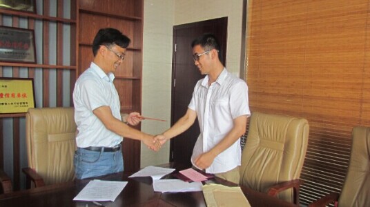 我公司于2013年8月参加了资助贫困大学生的爱心活动,资助了2名在校大学生。今年,被资助的其中一名同济大学的学生,因学习成绩优异被保送读研。我公司决定继续资助此名大学生,直至他完成研究生的全部学业,于2014年8月1日与这名学生签订了新的助学协议,将第一学年的助学金交到了他的手中。