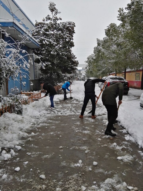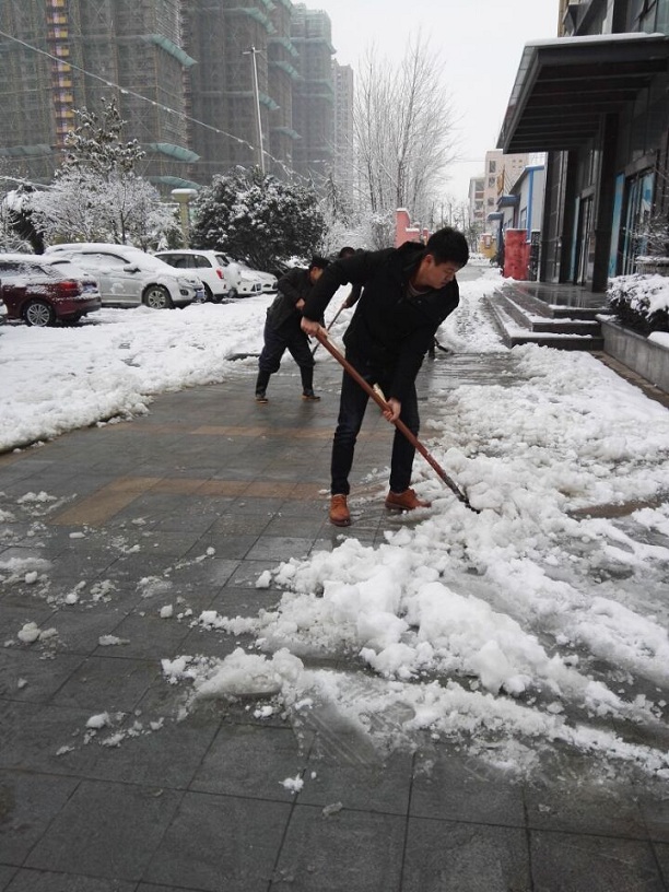 5日早晨,管理公司张总、物业部孔经理亲自组织本版块成员采取铁锹铲雪、扫帚扫雪、水管冲雪等方式为大家开辟道路。在白雪皑皑的清晨,银装素裹的产业园中,铁锹与扫帚的劳作声,似乎燃起了大家内心的火热,吸引着更多的联海同仁自发的参与其中,感谢这些可爱的联海人,让我们为这些“开路者”点赞!