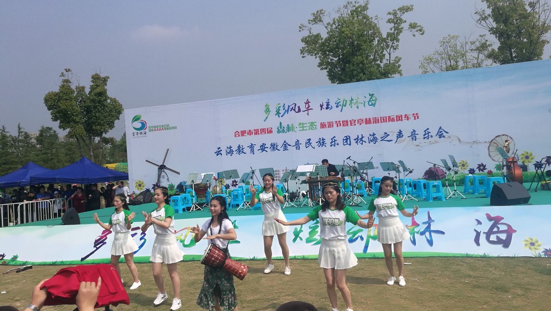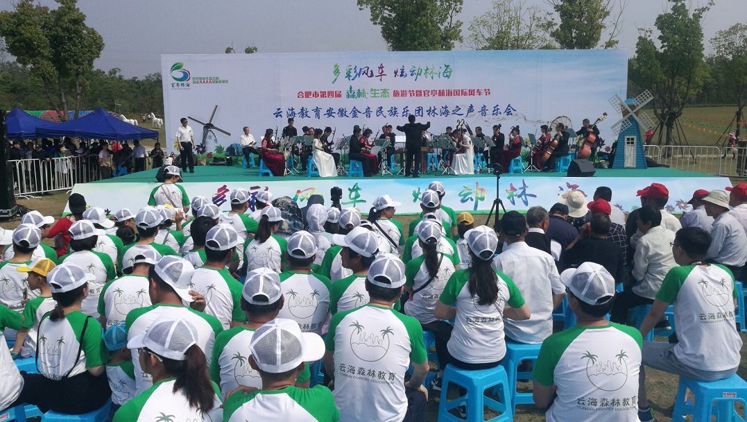 活动首先是欣赏集团云海教育板块为合肥市第四届森林·生态旅游节暨官亭林海风车节精心呈现的云海教育安徽金音民族乐团林海之声音乐会,不仅有云海教育的老师们载歌载舞,还邀请了众多民间艺术家为本次音乐会增光放彩。