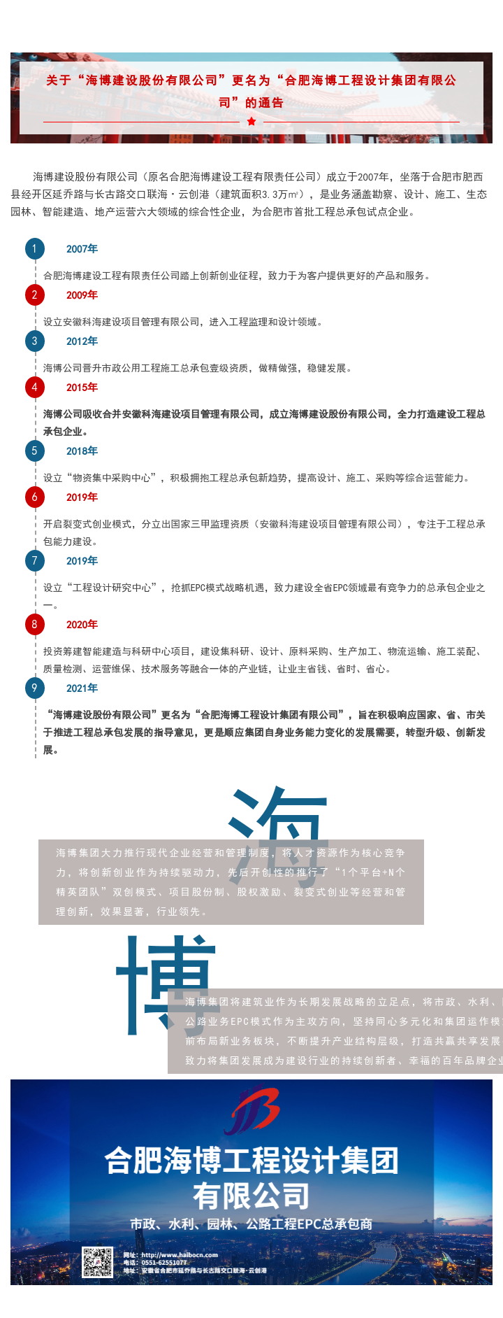 关于“海博建设股份有限公司”更名为“合肥海博工程设计集团有限公司”的通告