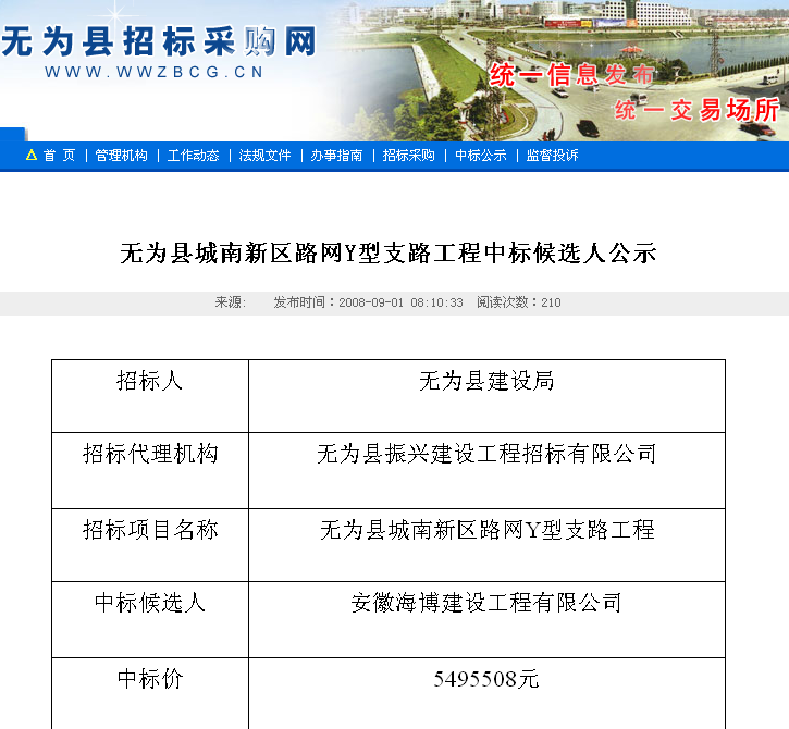 无为县城南新区路网Y型支路工程是无为县建设局08年重点工程。我公司在众多竞争对手中脱颖而出,夺得承包权。