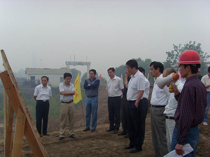 2009年5月23日上午,安徽省“江淮杯”检查验收组专家、领导一行冒着绵绵细雨,深入我公司胡湾圩排涝站工程工地施工现场检查、指导工作。