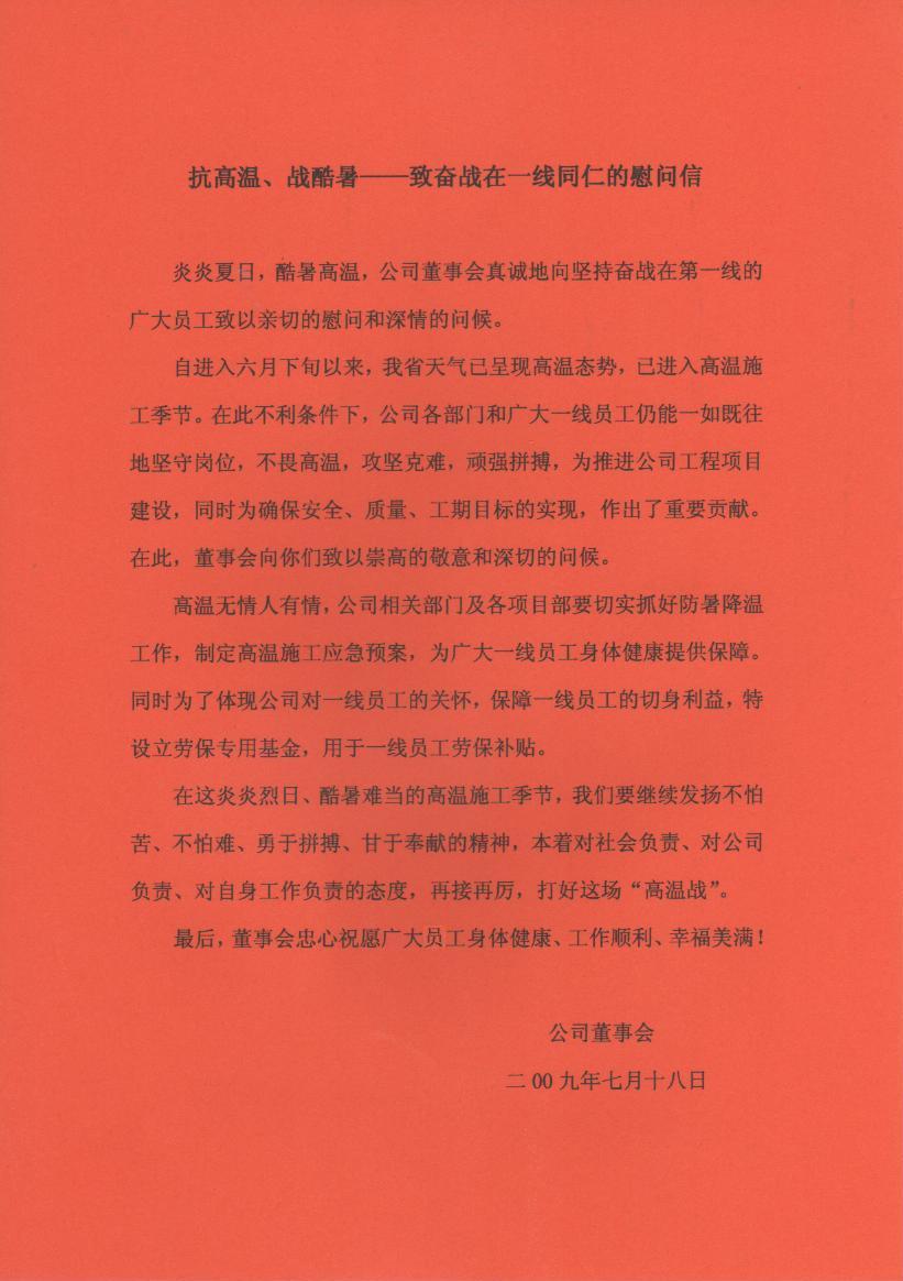 抗高温、战酷暑——致奋战在一线同仁的慰问信