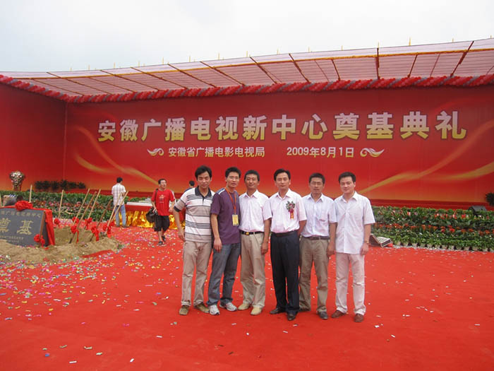 8月1日上午9:18分,合肥市政务文化新区美丽的天鹅湖畔,锣鼓喧天,彩旗招展,我公司承建的安徽“861”行动计划重大项目、省广播电视新中心项目奠基开工仪式在此隆重举行。